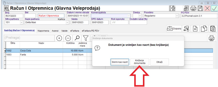 Napomena: Pre knjiženja dokumenta proverite „datum i vreme obrade“