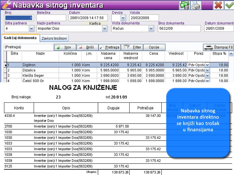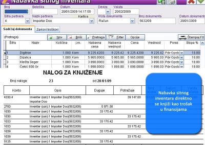 Sitan inventar je sastavni deo osnovnih sredstava. Sitan inventar za razliku od osnovnih sredstava se odmah u potpunosti otpiše, tj. po nabavci se kompletno knjiži kao trošak. Količinsko stanje sitnog inventara se evidentira samo putem popisa sitnog inventara. Takođe je povezano automatski sa finansijskim knjigovodstvom.