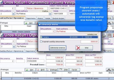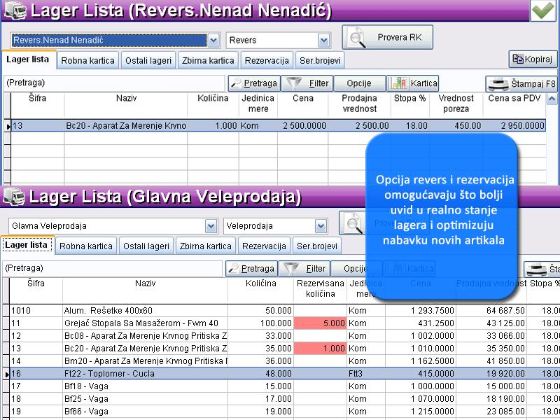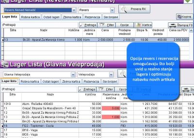 • automatsko kreiranje lagera na osnovu ulaznih i izlaznih dokumenata