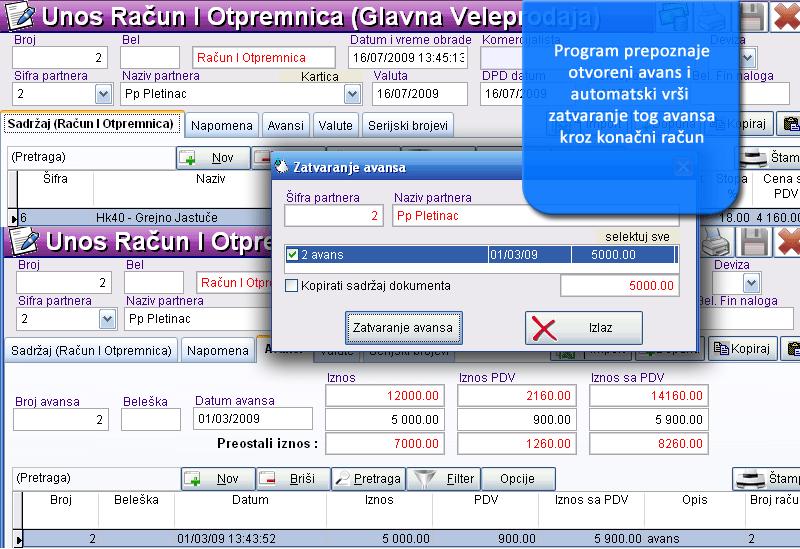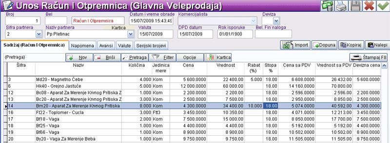 Program radi automatski nivelaciju ulaza i izlaza robe i to za količinu koju prodajete. Cene iz cenovnika možete formirati kao prodajne i program je može povući direktno u izlazne dokumente ukoliko to označite u opcijama.